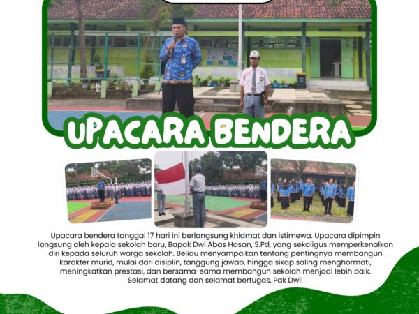 Pada hari Senin, 17 November 2025 telah dilaksanakan upacara bendera dengan agenda perkenalan kepala sekolah baru, Bapak Dwi Abas Hasan, S.Pd. Upacara dihadiri oleh seluruh guru, tendik, dan siswa. Semua..