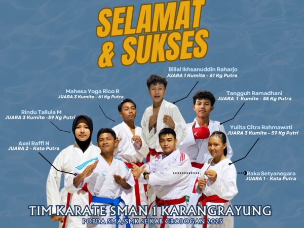 Prestasi membanggakan kembali ditorehkan oleh Tim Karate SMAN 1 Karangrayung dalam ajang POPDA SMA/SMK se-Kabupaten Grobogan tahun 2025. Dengan perjuangan penuh disiplin, kerja keras, dan sportivitas tinggi, para atlet muda..