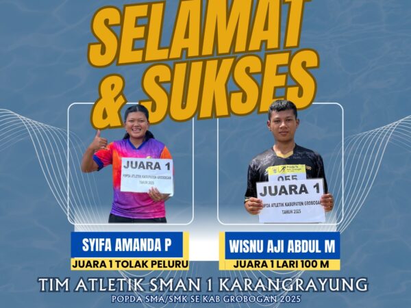 Prestasi membanggakan kembali diraih oleh SMAN 1 Karangrayung melalui cabang olahraga atletik dalam ajang POPDA SMA/SMK se-Kabupaten Grobogan tahun 2025. Dua atlet terbaik sekolah berhasil menunjukkan performa luar biasa dan..