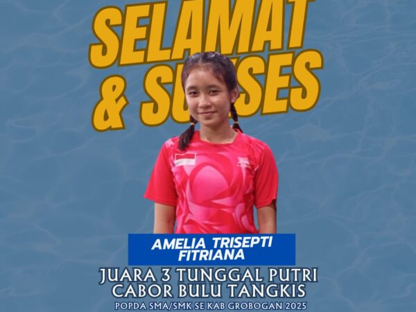 Amelia Trisepti Fitriana (Kelas X7) , siswi berbakat dari SMA Negeri 1 Karangrayung, berhasil menorehkan prestasi membanggakan dengan meraih Juara 3 Tunggal Putri dalam cabang olahraga bulu tangkis pada ajang..