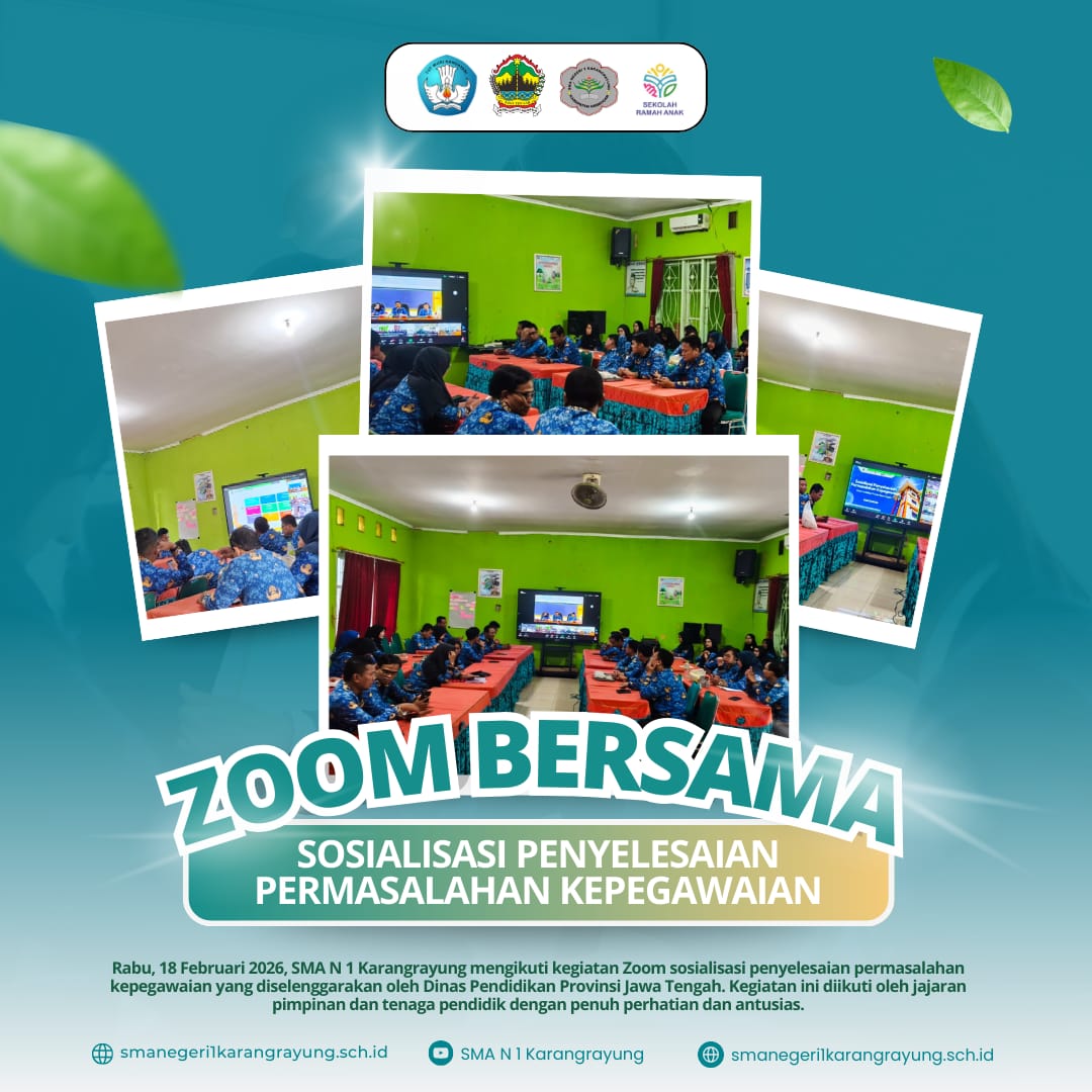 Rabu, 18 Februari 2026 – SMA Negeri 1 Karangrayung mengikuti kegiatan Zoom Sosialisasi Penyelesaian Permasalahan Kepegawaian yang diselenggarakan oleh Dinas Pendidikan Provinsi Jawa Tengah. Kegiatan ini dilaksanakan sebagai upaya memberikan pemahaman yang komprehensif terkait berbagai aspek administrasi dan penyelesaian permasalahan kepegawaian di lingkungan satuan pendidikan.