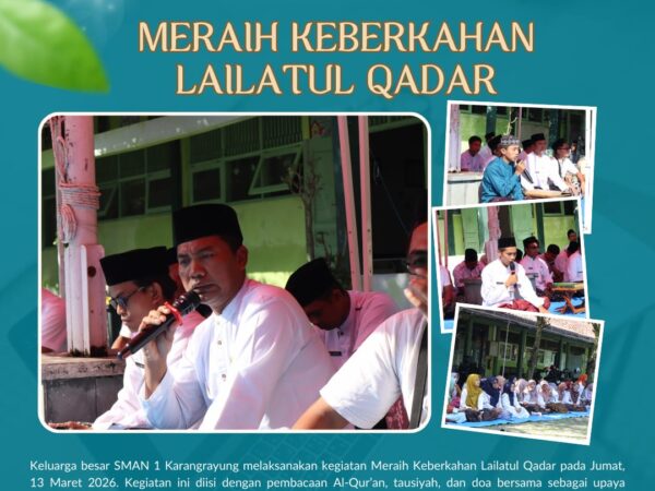 SMA Negeri 1 Karangrayung menggelar kegiatan bertajuk “Meraih Keberkahan Lailatul Qadar” pada hari Jumat, 13 Maret 2026. Kegiatan ini dilaksanakan sebagai bagian dari rangkaian program keagamaan di bulan suci Ramadhan..