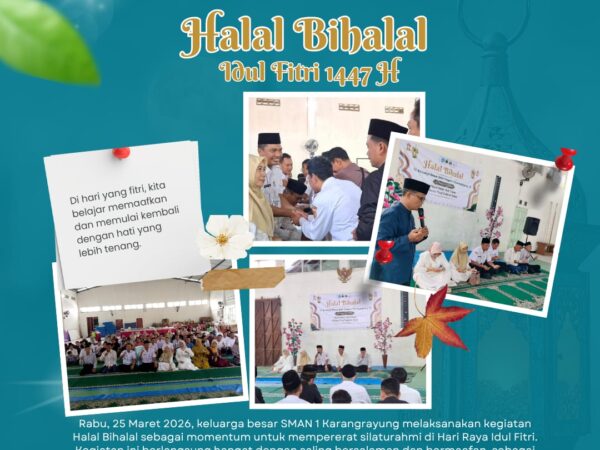 Pada hari Rabu, 25 Maret 2026, keluarga besar SMA Negeri 1 Karangrayung menyelenggarakan kegiatan halal bihalal dalam rangka memperingati Idul Fitri. Kegiatan ini menjadi momentum yang penuh makna untuk mempererat..