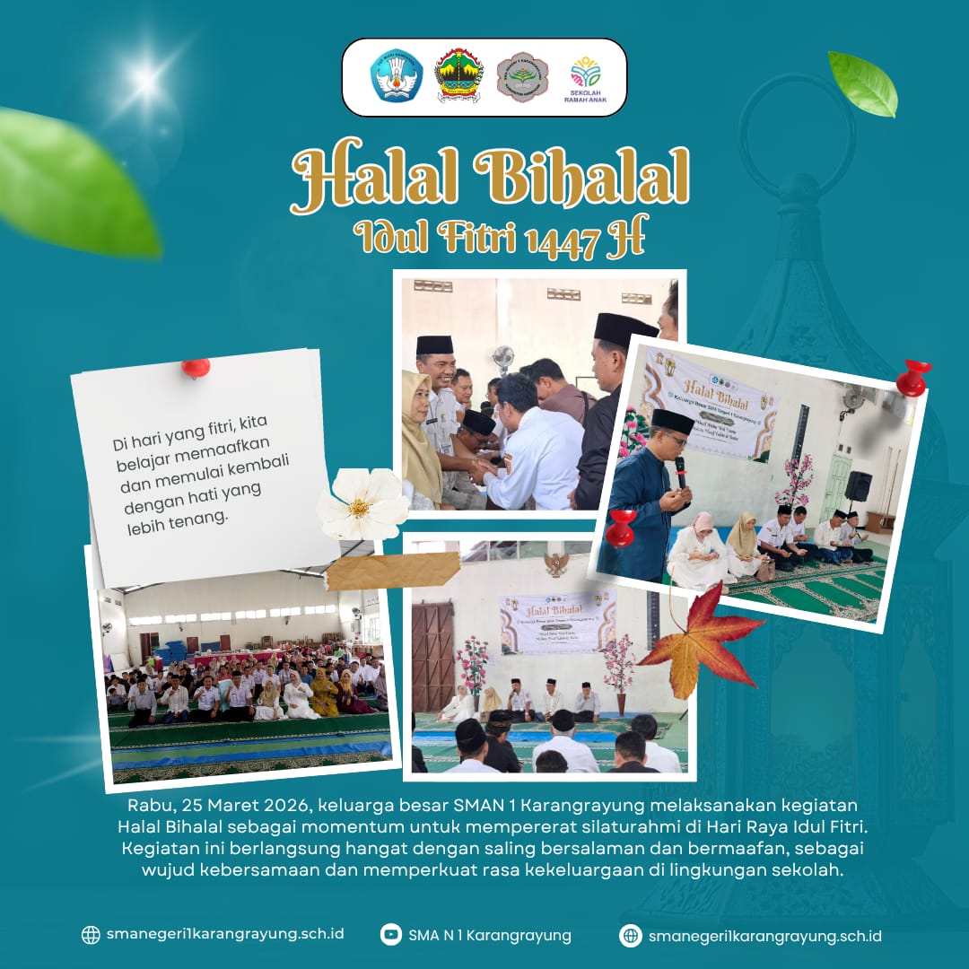 Pada hari Rabu, 25 Maret 2026, keluarga besar SMA Negeri 1 Karangrayung menyelenggarakan kegiatan halal bihalal dalam rangka memperingati Idul Fitri. Kegiatan ini menjadi momentum yang penuh makna untuk mempererat tali silaturahmi serta memperkuat rasa kebersamaan di lingkungan sekolah.