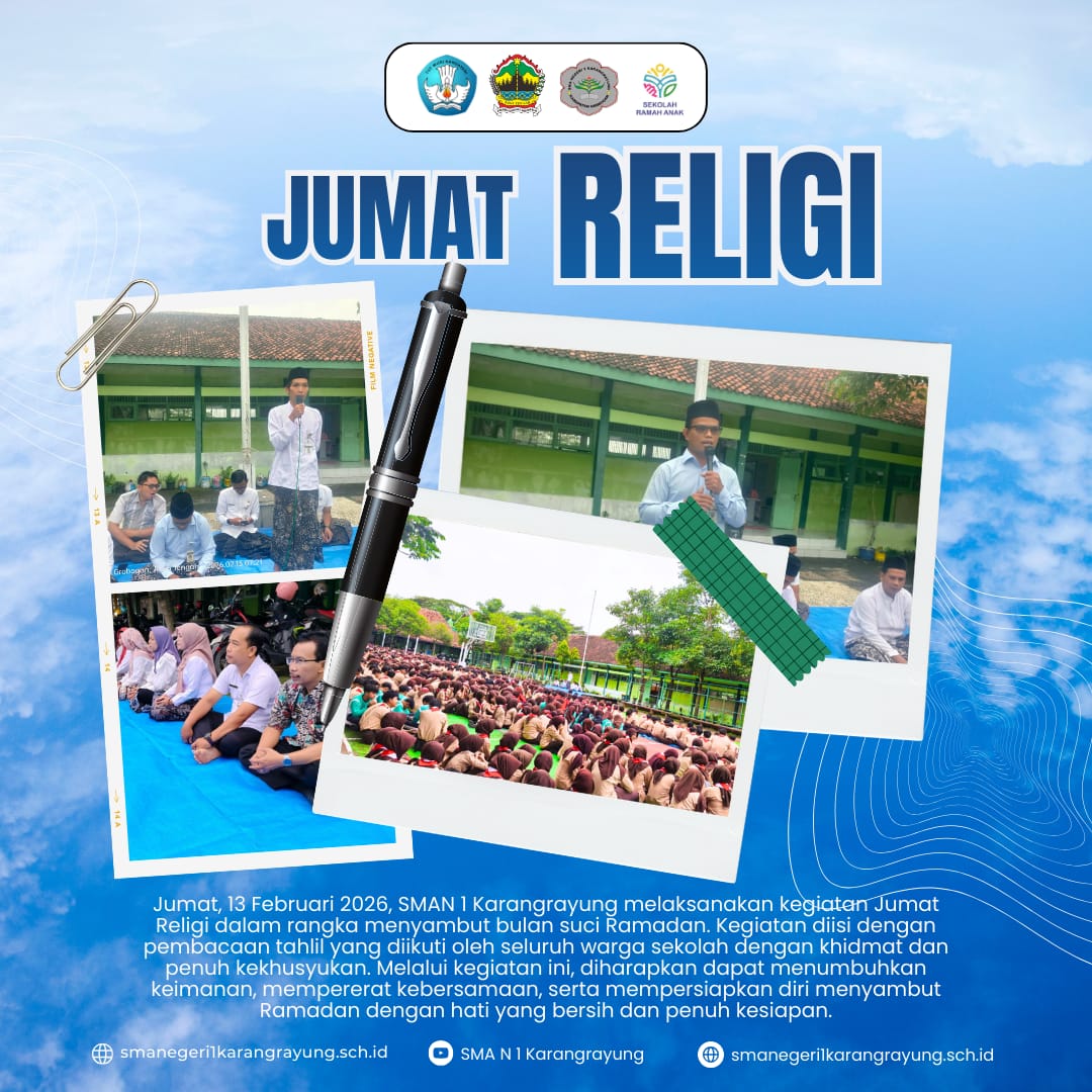 Karangrayung, 13 Februari 2026 — Dalam rangka menyambut datangnya bulan suci Ramadhan, SMA N 1 Karangrayung menyelenggarakan kegiatan Jumat Religi yang diisi dengan istighosah dan doa bersama. Kegiatan ini berlangsung dengan khidmat dan penuh kekhusyukan, diikuti oleh seluruh siswa, guru, serta tenaga kependidikan.