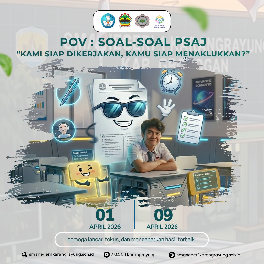 SMA Negeri 1 Karangrayung melaksanakan kegiatan Penilaian Sumatif Akhir Jenjang (PASJ) bagi peserta didik kelas XII yang berlangsung mulai tanggal 1 April hingga 9 April 2026. Kegiatan ini merupakan tahapan penting dalam proses evaluasi pembelajaran sebagai penentu capaian kompetensi siswa selama menempuh pendidikan di jenjang SMA.